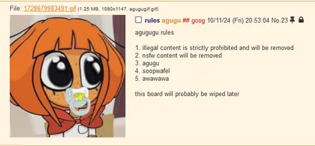Aguguland.online was a very weird splinter imageboard dedicated to posting Agugu.