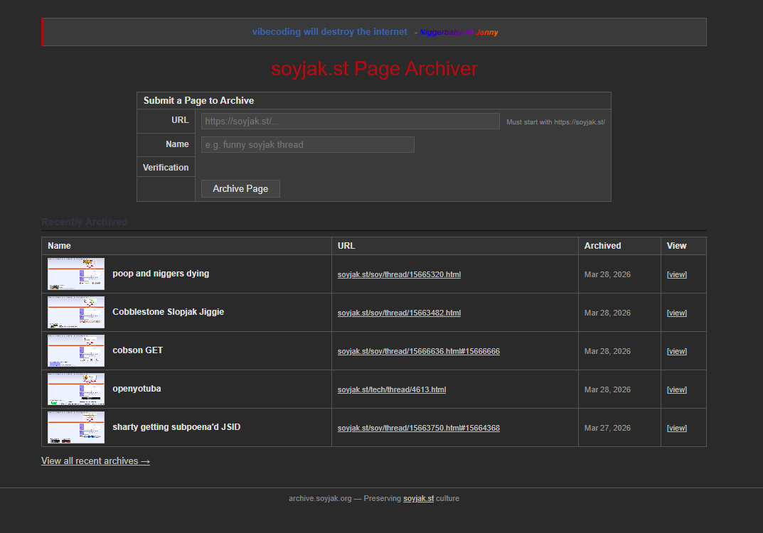 | Archive.soyjak.org is deader than the Jarty.