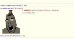 Boot was best known for making pointless changes amazing changes and modposting for attention on /soy/ as well as banning NAS from /soy/ and stealing a GET From 4cuck. He also executed well over 100 'teens for being dissidents[4]