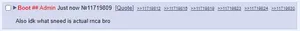 Boot, previously (for a short period of time after being declared as admin) known as Retard, was an admin of the Sharty who gained his powers by rolling the name "Retard" in a "first to roll" thread on June 16, 2025,[1] until June 19, 2025, when he resigned.[2]
