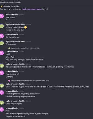 Find a chaser on https://app.chitchat.gg/ (a text only omegle knockoff) or similar and search by the tags "mtf" "ftm" "trans" etc.. and the location of your target, for example, "Ohio", along with states near it. When you find your target ask them how long they've been into trans men/women.