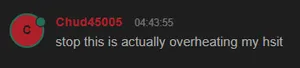 He initially showed up after being directed to the IRC because the site wasn't working for him. Due to him constantly complaining, another Chud said his Wi-Fi was shit, and he should stop being a third-worlder, this made him seethe for hours.