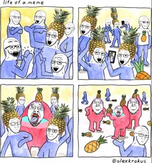 - Two Soyjaks Pointing is the most well-known instance of coalification. A once gemmy variant was ruined by Normies and Xitter users, turning it into nothing more than your average shitty redraw trend that dies in a month or less.
