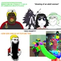 Many colorgems were created in the Soot-era in the aftermath of Soyvil War 1 and the deformed soyjak trend, but then died out until one poster began spamming them again one or two days before the Cacacaust. As of writing this there is a huge cattywipe attempt by the ircfags in question where they regularly spam and raid normal threads to goon because of their futa addiction disrupt soyteens trying to just use the site.[1]