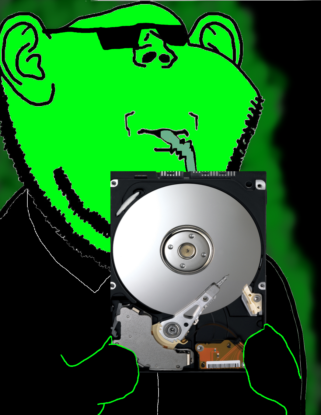impish glowie drinking hard drive