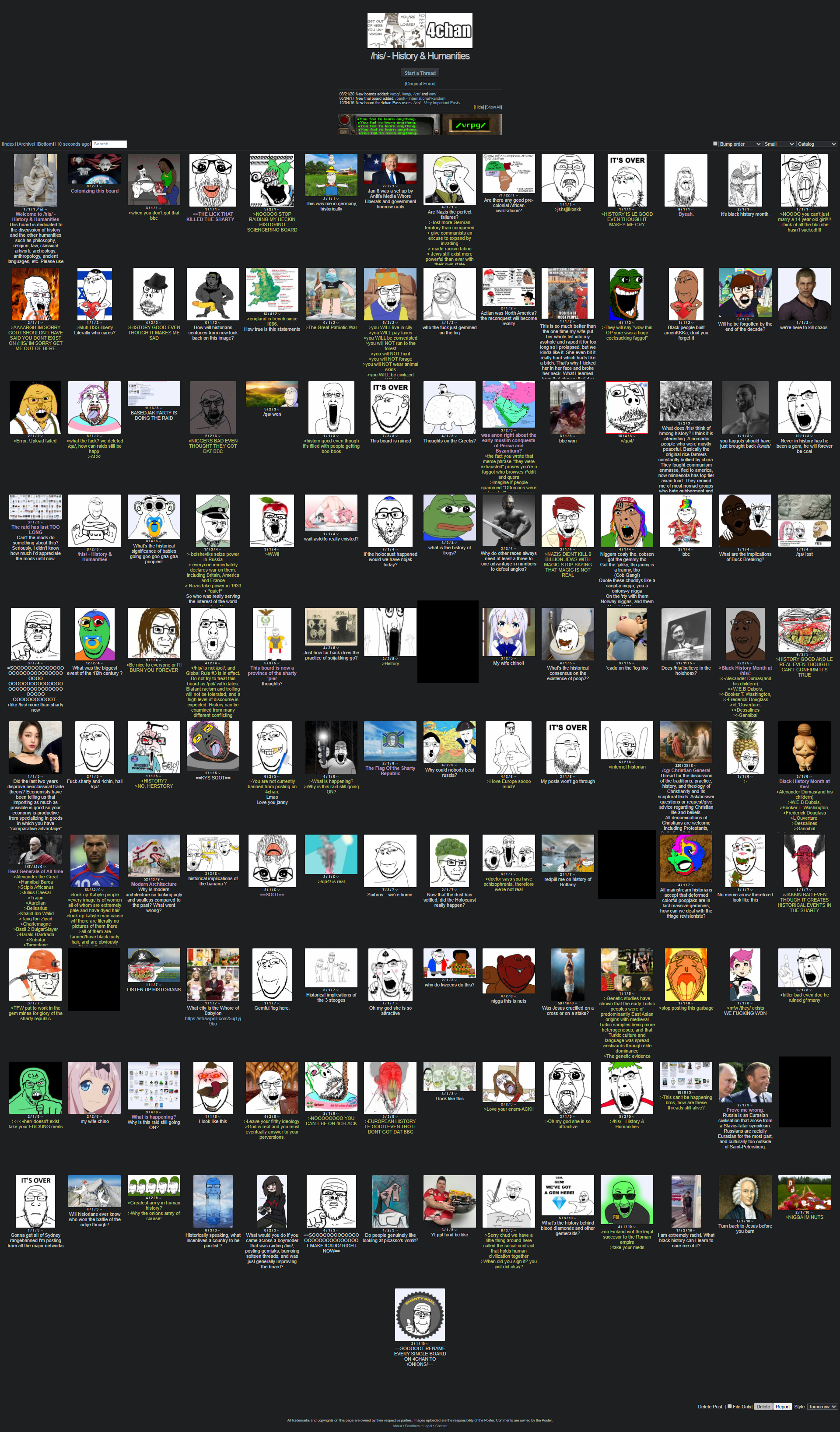 A screenshot of 4chan's /his/ being raided by soyteens.