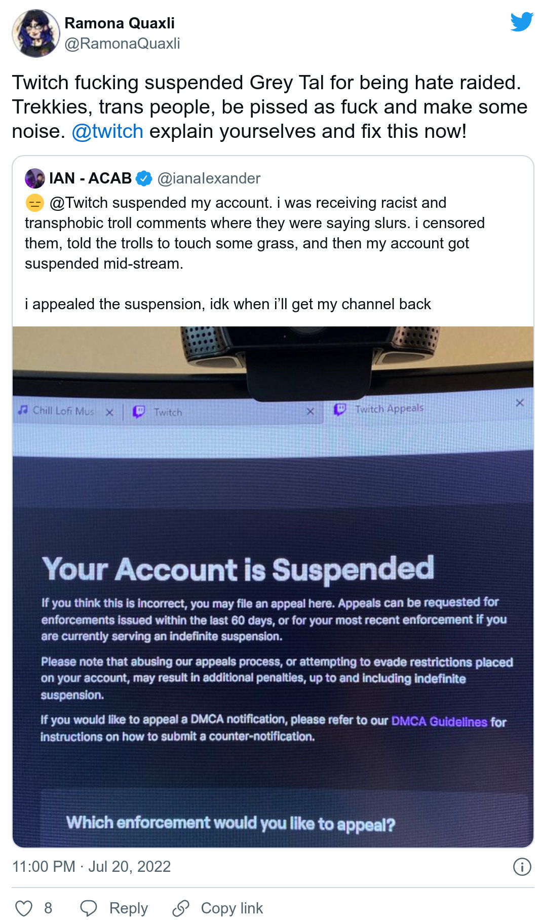 ugh. those FUCKING chudcels got my FAVORITE capeshit actor heckin BANNED! https://twitter.com/ianaIexander/status/1549881629023170560