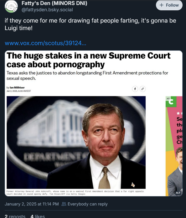 Fattysden, ever the genius, vagueposts about killing politicians because he might not be able to jerk off to lard.