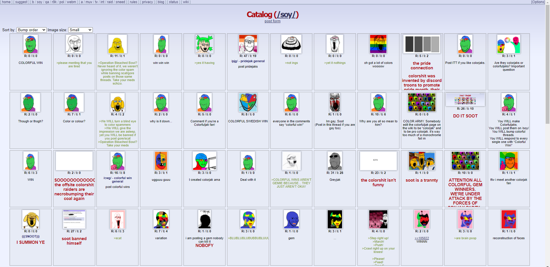 | 15:55, 11 June 2021 | 1,920 × 932 (381 KB) | SneedWeed (talk | contribs) | Source: https://web.archive.org/web/20210611155001/https://soyjak.party/soy/catalog.html |