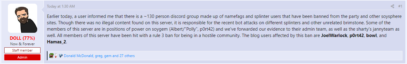 Doll announcing the namefag purge