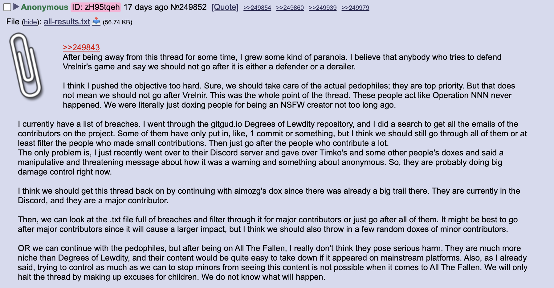 >The only problem is, I just recently went over to their Discord server and gave over Timko's and some other people's doxes and said a manipulative and threatening message about how it was a warning and something about anonymous. So, they are probably doing big damage control right now.