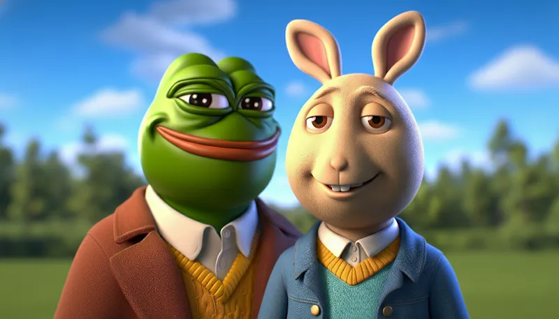 an expanded ai image of Pepe The Frog and Buster Baxter