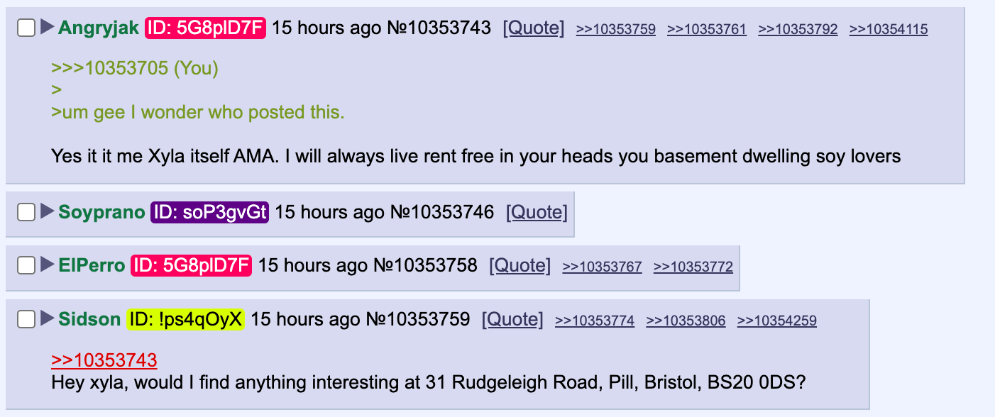 Stella goes silent in thread after his address is posted