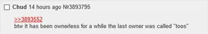 - One reply states that the final owner's name was "Toos" but its unlikely that this reply was also by the time traveler.[it just is, ok?] If Toos was indeed the final owner, it is theorized that this is Admin 6.