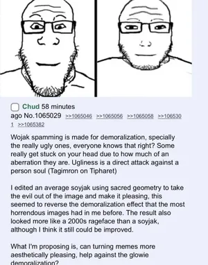 >This wiki is meant to expand soyjak communication, but you're not even a soyjak anymore! What you've become terrifies me. You're a freak.