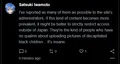 Afterwards, all the lolipedos went onto xitter to complain and spread awarness about Snarky Snappy. 'teens obviously saw this as an opportunity for gems. Some 'teens began posting DNB, causing massive seetheralds. Soon an idea would pop up where a 'teen suggested spamming Borat and the BNWO(Borat New World Order) in the replies. While this happened, some neonazilarpinglolipedo seethed and locked their accounts after Borats were sent.