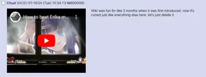 Otherwise Rika's appeal is the ability to fit in any situation where the comedy derives from the absurdity of her being there (just like the hecking troonhou fumos). She's also used for chud baiting[4] and to represent the Sharty's general appreciation for Higurashi, and to show that Higurashi is Sharty culture[it just is, ok?].