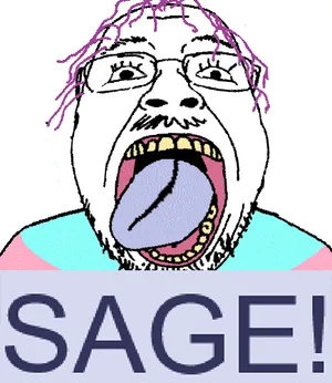 In late 2022, colored text reading SAGE! was added to make a sage read more clearly. This addition followed the sharty’s typical contrarianism to 4chan, since announcing a sage on the cuck is a bannable offense. This wasn't always the case, and in the moot era, sages were announced on 4chan. It also makes negation a lot easier as you'll know if a thread has been saged.