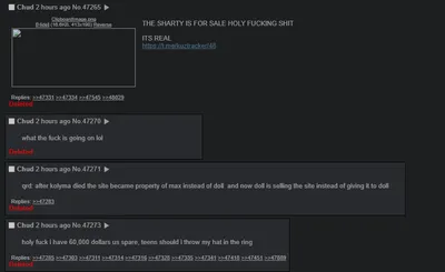 On July 16th, soyjak.party completely went down due to a server transfer. Max then officially put the site on sale. At the moment, it seems that DOLL will acquire the site, but Frenschan has also attempted to acquire it.[6][7]. This event has colloquially been referred to as The Great Auction.