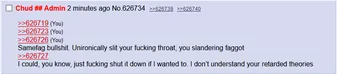 Do similar stuff as with sootbaiting. Accuse them of jannying wrong (you're holding it wrong btw), being a glownigger, selfish little fuck, or hating the Sharty and there's a 60% chance you'll get a capcode reply. Call them [x] spammer and you might get them to seethe incoherently about client side post filters. Bribe with hotpockets to get them to move threads. Make random conspiracy theories up and you'll get SLF jigs from Mustard. Claim to want a board deleted and then seethe when it is for a "Greentext CIA soyjaks" type tirade under your thread. Call the whole site Discord. Accuse them of stalking you with your IP post history or seethe about gempass. Sneed about Frootcord. Kvetch in the IRC. Kvetch about random namefags. Post retarded shit until they (((notice))) and leak your post history by talking about it.