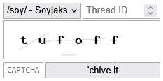 Soychiver is perhaps the quickest soyjak.party archiver. Created by North, archiving threads with 200 reppeys in 3 seconds.[a] It's intended as a manual replacement for The Cellar, but will become more polished over time. It's built in PHP.