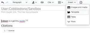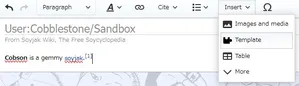 Select the first option in order to use the template, then click "Insert." A list of most templates you will need is at Soyjak Wiki:Template. Generally, you should add a max of two header templates (Template:Tranny, Template:Oldfag, etc), and one quality template for the topic (Template:GemShort, Template:CoalShort, Template:Brimstone, etc), then Template:Reflist and navboxes (This article is part of a series on... trolling, Froot, Kuz, etc) after that.