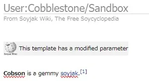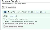 The template documentation tells us that this template has one parameter that's called "content," but beware that not all editors who make templates are intelligent or considerate enough to include this documentation for you; you might need to view the template through the source editor that we mentioned earlier to see what parameters it has. Don't worry, this is simple: just click "view source" and see what is surrounded by three curly brackets like {{{so}}}. That is a parameter, and it can be replaced when the template is used within articles.