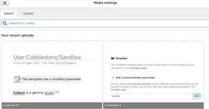 After this, you'll get this screen where you can upload new media or look up the name of the file you want (note that you need to include the file extension too). You can use all files that are hosted on Wikimedia Commons (the file repository Wikipedia uses) right away without uploading them here first. After you upload an image, you can modify its size and whether it is aligned to the left or to the right of the page.