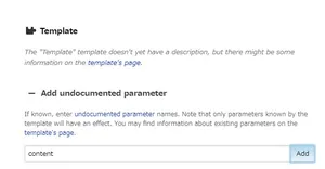 Other times, the parameters of a template aren't documented, and in order to use them, we must first know what parameters the template in question has. Go to the page of the template that's called "Template." Template:Template.