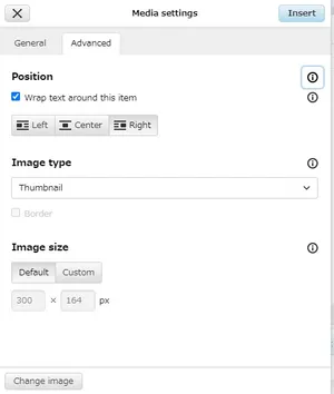 After you upload any image and include it in an article, you can modify its caption via the "General" tab and, more importantly, its size and whether it is aligned left, right, or center via the "Advanced" tab. If in doubt, just select "Right", "Thumbnail" for image type, and keep the image size default.