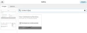 Search "Guidepic16.jpg" through "Guidepic14.jpg" and add them to this new gallery, then click "Insert" to add this gallery to your article.