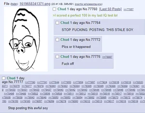 - ↑ https://web.archive.org/web/20210430121838/https://soyjak.party/soy//res/77760.html#77777
