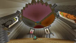 When you spawn for the first time, you are greeted with a hall containing the portraits of the sharty's admins. Due to Kuz's reputation, the only tribute he received was a tiny tombstone mocking xer. When you walk outside going under Root's portrait, you will encounter a board with signs on it introducing you to the server's workings. Walking further it is revealed the hall is the inside of a giant Soylent bottle. Upon taking the elevator to the first floor, you will see a collection of moderators, namefags, and sharty staff. CORE_DUMP_ states he is planning to add more floors to the Soylent bottle.