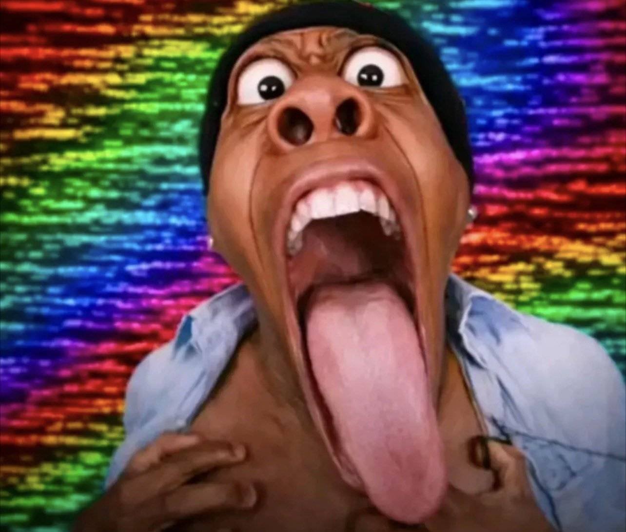 Spedjak is a soyjak variant with most notable features include a wide-open mouth with a huge tongue sticking out and bulging eyes. This variant originates from a thread on /soy/, where a soyteen would ask in 'jakking' for the edited face ishowspeed, thus originating soyjak itself