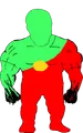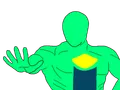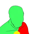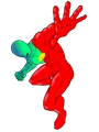 Sprokeman was created as a parody of Pepsiman imagining what he would like as a mascot to Sproke. His design is created by redoing Pepsiman with the main colors of Sproke: Red, green and blue, alongside replacing the Pepsi logo with the Sproke lemon logo. Pesiman himself has 2 designs, the classic that contains a full white body with a big red stripe, and another that is half blue, half red. For Sprokeman, the white is replaced with green, blue is replaced with red and red is replaced with blue in the classic design. A third design was created by ribbon that takes elements from both of these.