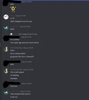 Victim 1 was groomed in September of 2024. They were 15 at the time, and Tetra knew it. Tetra introduced them to porn and exposed them to his rape fetish.[2]