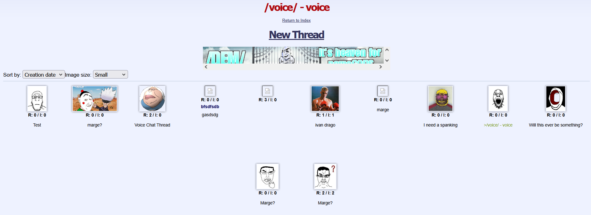 /voice/[1] is a locked board on the sharty with no clear purpose. It was created on August 7, 2024 by 9a0c, possibly for testing out the voice chat feature. On May 5, 2025 the board was locked after the jannies got reminded of its existence.