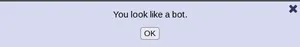 "You look like a bot" is a message that users sometimes get when attempting to post to soyjak.party.