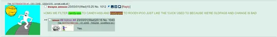 One of the 'teens made a post on /b/ making fun of its users for being boomers with no life. One of the admins, lolwut decided to pin this post, in an attempt to save face like that shitty yes chad meme. Unfortunately for him, no one cared and 711chan continued to be raided.