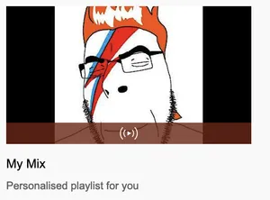 Cobson's career as a musician was jumpstarted when he received a number of edits depicting him as a rapper.[20][21][22] From there, he starred in an unusual number of song parodies on the Soyjak Party Video Archive. His early work was a little too new wave for my taste, but when Gem Cobity released in '21? I think he really came into his own, both commercially and artistically. He's been compared to Svenska Beat, but I think Johbson has a far more bitter, cynical sense of humor.