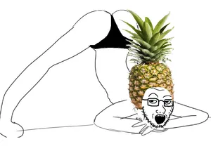 Fruit Soyjaks or Fruitjaks is a trend of soyjaks with items on their head. They have an ancient rivalry with the bug wearing soyjaks. In the past, many users (or one schizo) had turned against pineapple soyjaks and started harassing them and acting like Lee towards them, other users called them pineapple.partytourists, as well as the misspelled word "tourisy" for an unknown reason, this treatment had begun to happen to other fruitjaks as well much to their confusion and dismay. What crime against humanity Fruit Soyjaks had committed is currently unknown, although some say they were used by /s4s/, but there is no peer reviewed study of this.
