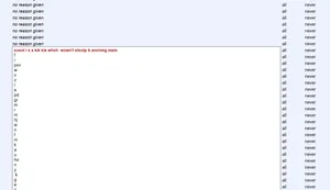 Gibberish Waller was a notorious baby bot wannabe that spams walls upon walls of random letters in a way similar to the old dotspammers. His spam often made the site unusable when it doesn't outright crash it. Sometimes he mixes (garbled to avoid script detection) messages among the gibberish, often calling Froot a nigger or something. You can often notice he is active by checking the ban logs and seeing that his bans have FILLED THE WHOLE FUCKING PAGE. He usually logs on and deploys the bot at around 12:00 UTC.