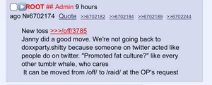 After the Admin Doll left and 'oxing got unbanned, she was one of the first people to be targeted when /raid/ got reorganized. The soyim say there is now an effort to create a second Operation 9/11 (xer being one of the targets) but the new Admin of sharty Root has gone on to be critical of her doxing thread saying: "We are not going back to doxparty.shitty". It's understandable that soyteens dislike her considering she inserts alot of retarded politics in her videos for children, this combined with the 'fat acceptance' controversy led her to be in sharty's crosshair. Opinion is mixed on doxing, but the line drawn in the middle was not targeting 'literal whos', many soyteens don't believe she falls under this criteria.