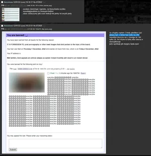 A large amount of obscene Animal abuse threads commonly get flooded during off hours. These threads are blamed on the dark web site █████. These types of posts are also sometimes blamed on Foodistzen/the foodists. Generally, the videos posted are along the lines of 1 Monkey 1 Drill.