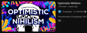 In other words it's just absurdism absurdism is not optimistic nihilism, absurdists have a search for "the absurd", so that they do want a nonsensical meaning in their actions as opposed to no meaning. A good example of absurdist media is Skibidi Toilet and Italian Brainrot, along with Gen Z/Gen Alpha nonsensical humor and most Soyjak.party humor, especially slopjaks. It differs from optimistic nihilism in the way that instead of being followed by soy-gulping retards who thinks that they are le heckin intellectual because they watched a Kurzgesagt (funded by Satan btw) video, it is usually practiced in a humorous and non serious matter and also the concept came from a book character that was heccin sigma stone cold tuff ohio master 6767.