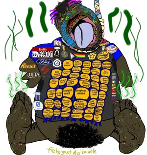 Slopjakking is a very common form of 'jakking on the sharty and the 'booru, typically having bright colors like autistic puzzle pieces[1] and awards being plastered all over the place with the main purpose of not being realistic and instead being sensory overload levels of bullraisin. Many theories have suggested that slopjaks are Satan.