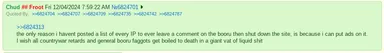 Unsuprisingly, boorusubhumans are known for being extremely easy to bait, leading to spectacular fits of rage. Even a post deemed normal by the average soycaca could get a few dozen to a over a thousand comments from namefags being extremely angry. Unlike most soyteens, boorucacas get angry at bait instead of laughing it out, mostly due to most of them being underage, LARPing as above 16. They also come from autistic online communities instead of more normal places like 4chan or YouTube. Note that unlike Sharty baiting, where all bait apart from the more extreme has been normalized, booru namefags fall for the most low tier bait, even for things not meant to be bait. This makes it so you can both post normal things you like and bait people. You don't even have to try. Double points!