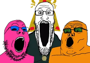 The First Soyumvirate were the ruling admins of the Frootist era Sharty from the end of the Soypocalypse, to October 9, 2023. This Soyumvirate consisted of DOLL (the then owner of the site), Angeleno (de-facto owner of the wiki) and Froot (future owner of the Sharty and wiki). Doll retired on August 31st 2023, following which Froot took his place as owner.. The First Soyumvirate would be officially dissolved on October 9, 2023, with the announcement of Angeleno's retirement as admin.