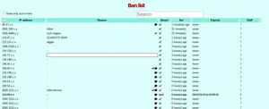Since the site's creation, it has experienced waves of porn (including furry, 'lita and 'p, possibly other stuff as well) spam as evidenced by the bans.html page. It's currently unknown who exactly is behind the spam but the site's staff seems convinced its the FDL trying to shut the site down. However it's likely the same groups of people who spam the sharty with that kind of material as well.