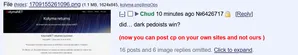 I of course never spammed CP on any site, and I maintained this position since the early days. An argument could be made for the suspicious timings of my arrival and the subsequent CP spam that showed up in soots era, I now believe this to be largely the work of discord servers trying to associate my name with their actions. You can see in most sharty discord servers, accounts with names like "Yuri Kuznetsov", "Kolyma Network" or "Kuz". These are either attempts to associate my identity with evil, or just some sort of joke. The accusation I have spammed cp, let alone posted on the nu-sharty is completely false.